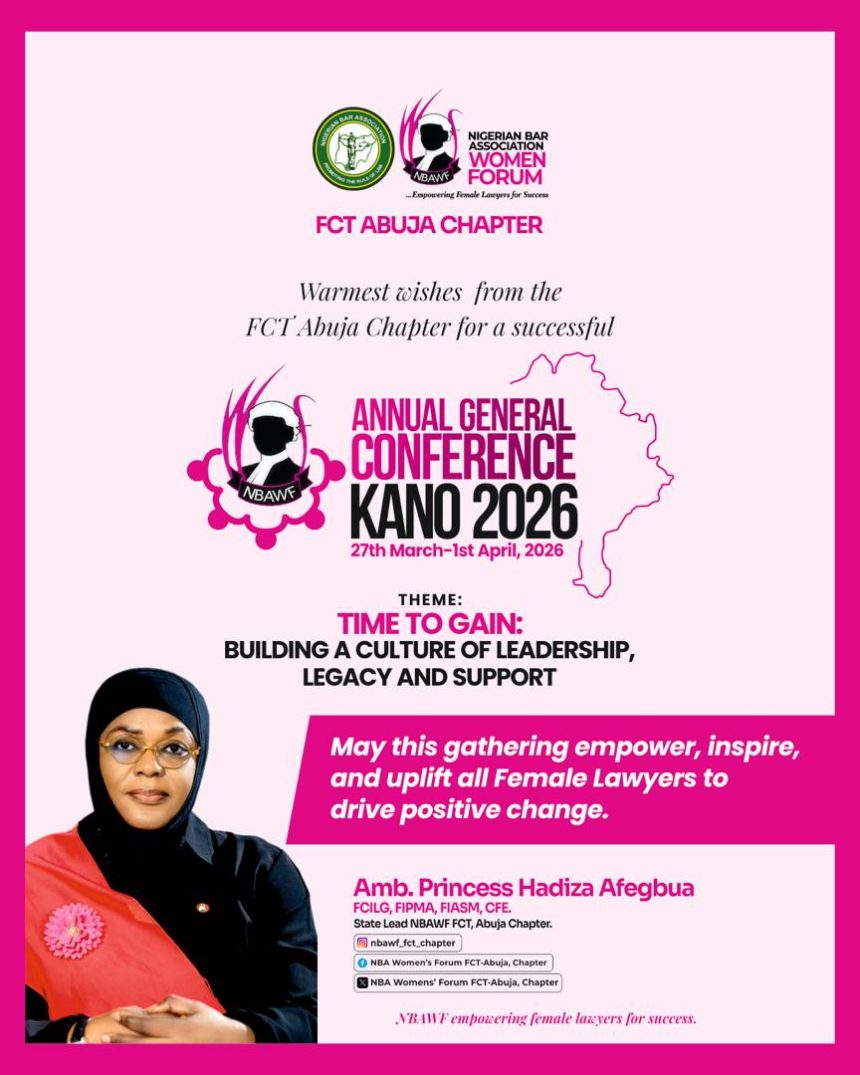 On behalf of the FCT Abuja-Chapter of the Nigerian Bar Association Women Forum (NBAWF), I extend warmest congratulations to Princess Huwaila Muhammad Ibrahim Chairperson NBAWF on the occasion of NBAWF…