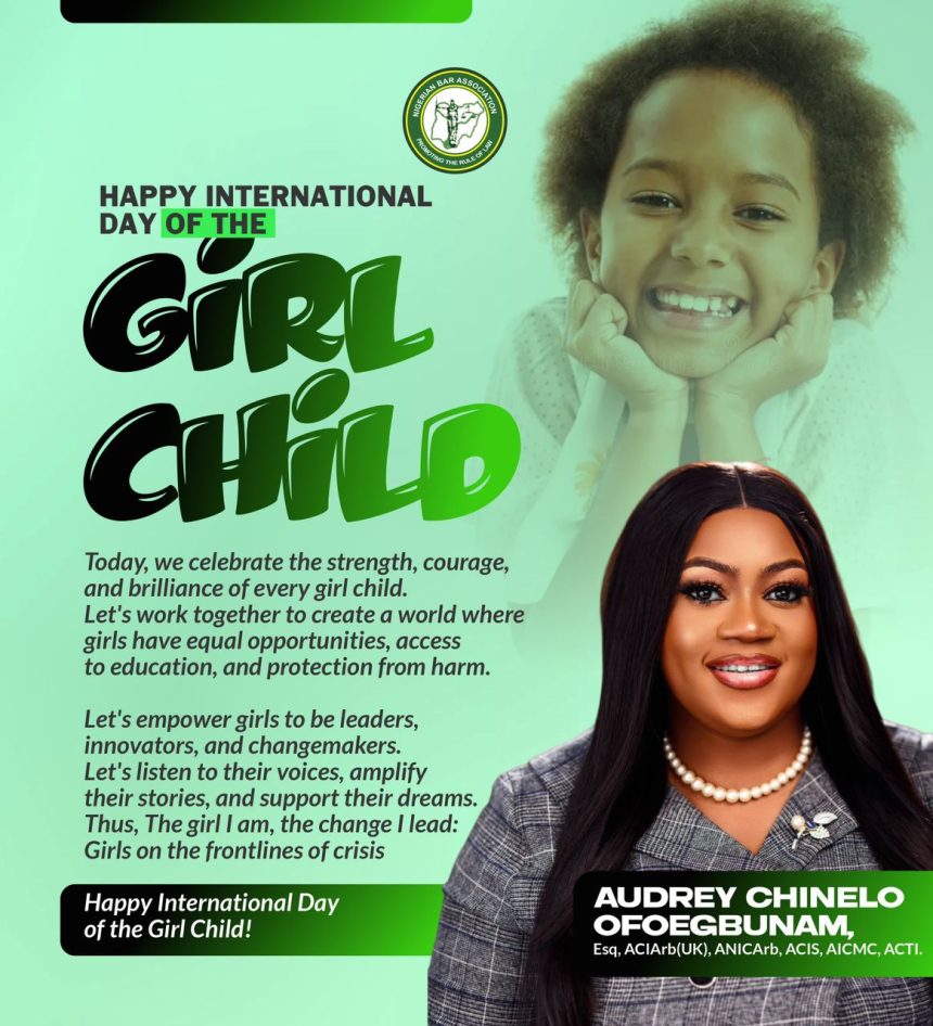 As the world marks the International Day of the Girl Child, Audrey Chinelo Ofoegbunam, Esq., ACIArb(UK), ANICArb, ACIS, AICMC, ACTI, has joined voices in celebrating the strength, courage, and brilliance of every girl child across the globe.