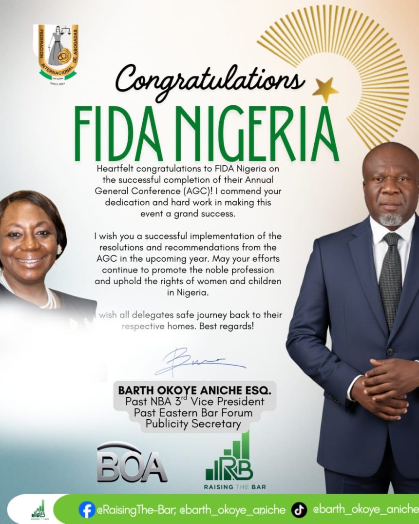 I extend my heartfelt congratulations to FIDA Nigeria on the successful completion of its Annual General Conference (AGC).