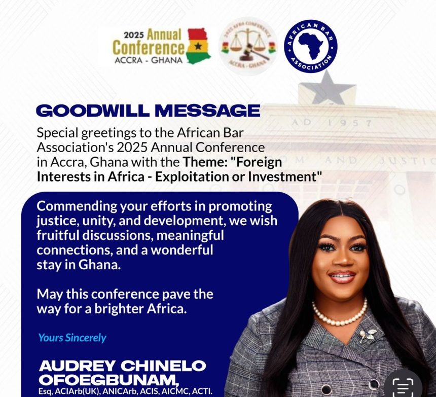 GOODWILL MESSAGE Special greetings to the African Bar Association on the occasion of its 2025 Annual Conference in the vibrant city of Accra, Ghana! As we converge to deliberate on…
