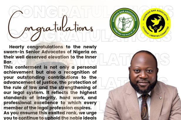 The Chairman of the Citizens Liberties Committee National of the Nigerian Bar Association (NBA), Nuhu J. Egya, has extended warm felicitations to the newly sworn-in Senior Advocates of Nigeria (SANs)…