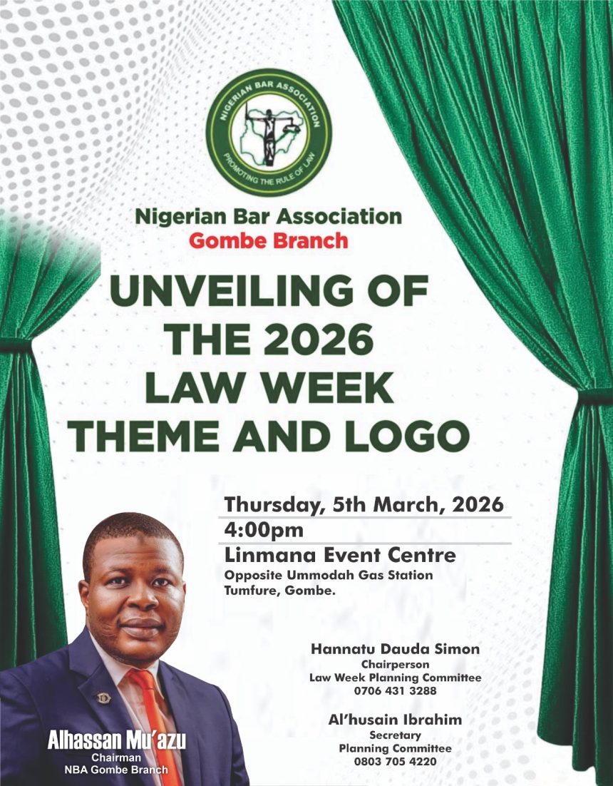 History unfolds this evening as the Nigerian Bar Association, Gombe Branch, officially unveils the 2026 Law Week Theme and Logo. The curtain rises at 4:00 PM at Linmana Event Centre,…