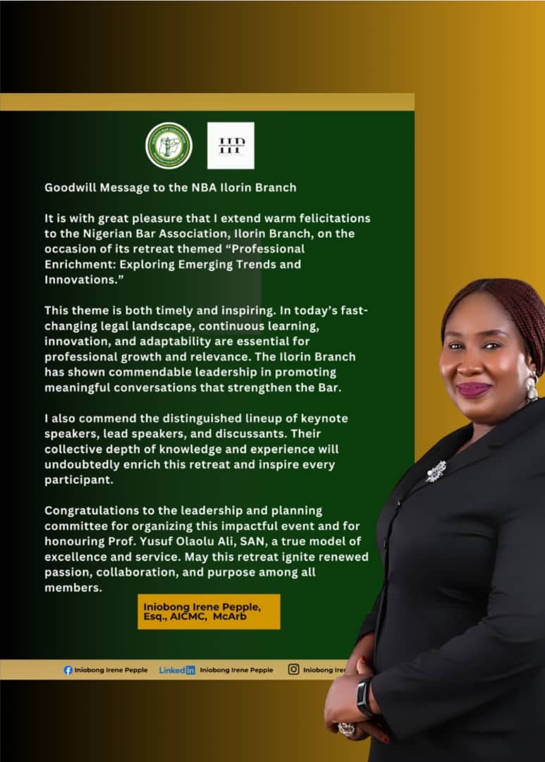 It is with great pleasure that I extend warm felicitations to the Nigerian Bar Association, Ilorin Branch, on the occasion of its retreat themed “Professional Enrichment: Exploring Emerging Trends and…