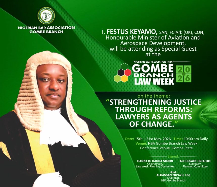The Nigerian Bar Association, Gombe Branch, has announced that the Honourable Minister of Aviation and Aerospace Development, Festus Keyamo, SAN, FCIArb (UK), CON, will deliver the Keynote Address at the…