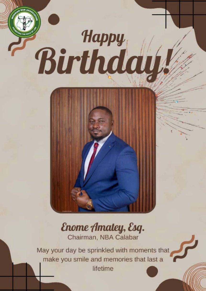The Nigerian Bar Association, Calabar Branch (Doyen Bar), has celebrated its Chairman on the occasion of his birthday, describing him as a visionary leader, steadfast advocate of justice, and beacon of excellence in the legal profession.