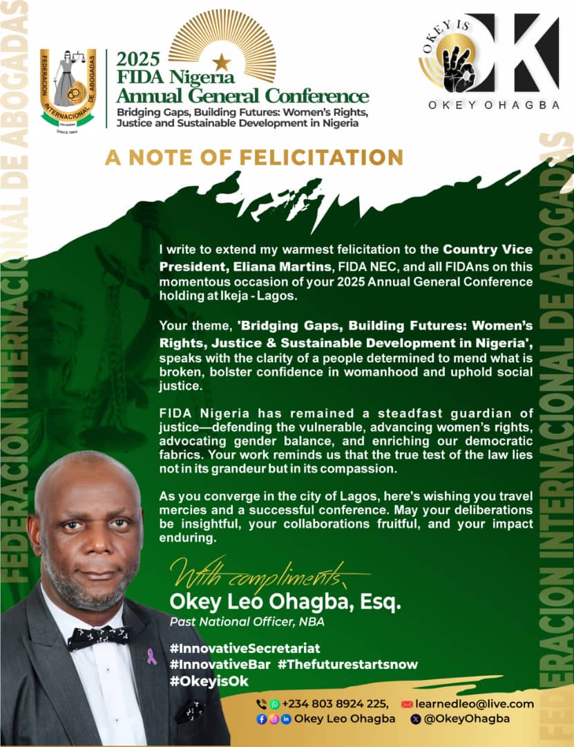FIDA NIGERIA 2025 ANNUAL GENERAL CONFERENCE A NOTE OF FELICITATION BY OKEY LEO OHAGBA