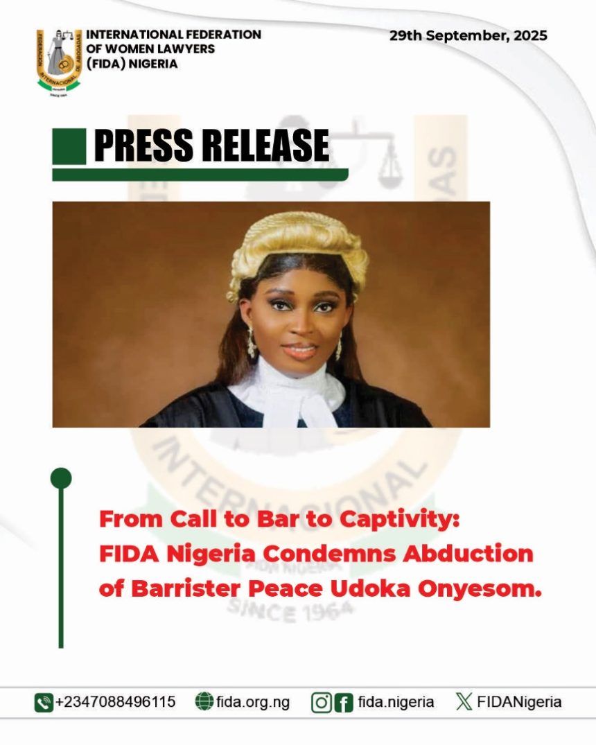 FIDA Nigeria Calls for Immediate Release of Abducted Lawyer Peace Udoka Onyesom and Sister