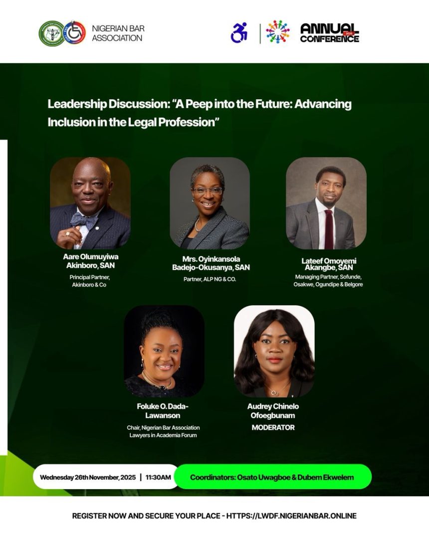The NBA Lawyers with Disabilities Forum (LWDF) is set to host one of the most anticipated sessions of the 2025 Nigerian Bar Association Annual Conference, featuring a high-impact leadership dialogue on the theme: “A Peep into the Future: Advancing Inclusion in the Legal Profession.”