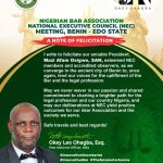 Distinguished colleagues, I extend the warmest of welcomes to Mazi Afam Osigwe SAN and all the esteemed members of the National Executives Council (NEC) as you converge on beautiful Benin City, Edo State, for your crucial NEC meeting.