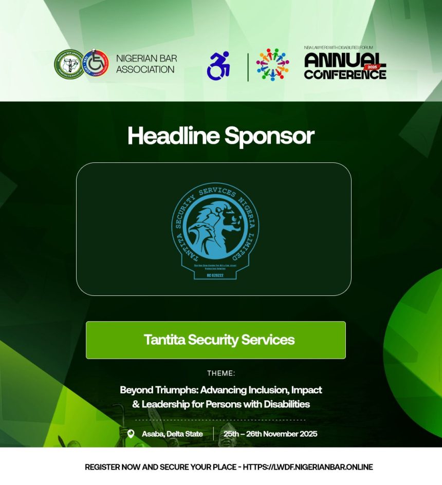 Asaba, Delta State – The Nigerian Bar Association Lawyers with Disabilities Forum (NBA-LWDF) has proudly unveiled TANTITA as the Headline Sponsor for its 2025 Annual Conference, set to take place from 25th to 26th November 2025.