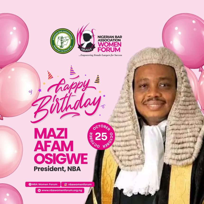 The NBAWF heartily felicitates with the President of the Nigerian Bar Association, Mazi Afam Osigwe, SAN, on the occasion of his birthday.